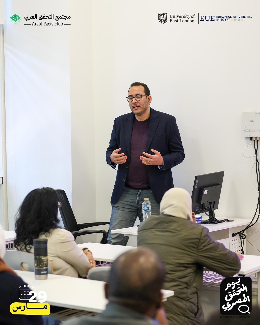 Delivered a lecture on advanced tools for geolocation verification during Egypt Verification Day, organized by Arabi Facts Hub and the University of East London. The session explored practical techniques for identifying locations, cross-checking spatial evidence, and strengthening open-source investigations through digital verification methods.